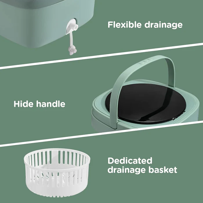 - Advanced ultrasonic cleaning: Our portable washing machine uses ultrasonic high frequency oscillations to remove bacteria and stains without deforming clothes or causing fiber damage.