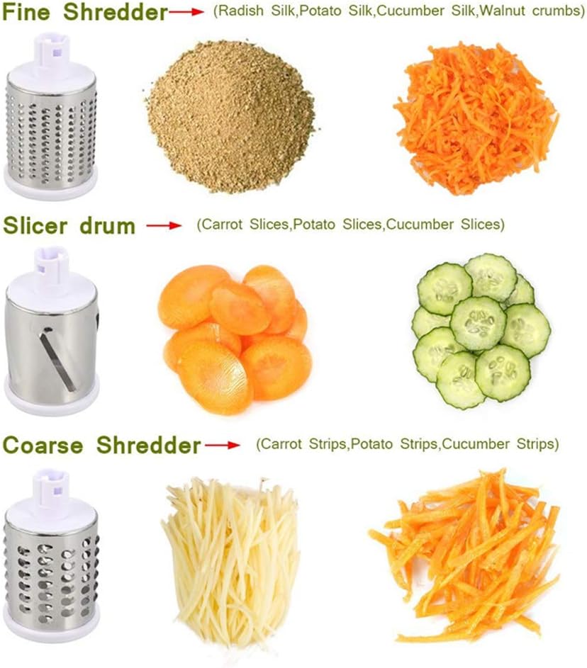 Manual Tabletop Drum Cheese Grater, 3 in 1 Multi-Function Grater and Slicer, Includes Fine Coarse and Slicing Drums, Ideal for Cheese Vegetables and Nuts, Hand-Crank Operation for Easy Use, Sharp Stainless Steel Blades, Strong Suction Base for Stability, Detachable Parts for Easy Cleaning, Durable and Rust-Resistant Construction, Compact and Space-Saving Design, Time-Saving Kitchen Gadget, Safe and Efficient Food Preparation, Suitable for Home and Professional Use, Easy to Assemble and Store, Perfect for Everyday Cooking Needs