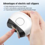 - 【Nail Debris Storage and Easy Cleaning】 Nail clippings from nail clipping are collected in the product’s storage box. By pressing the upper part of the window, you can easily open and dump the nail clippings for quick and easy cleaning
