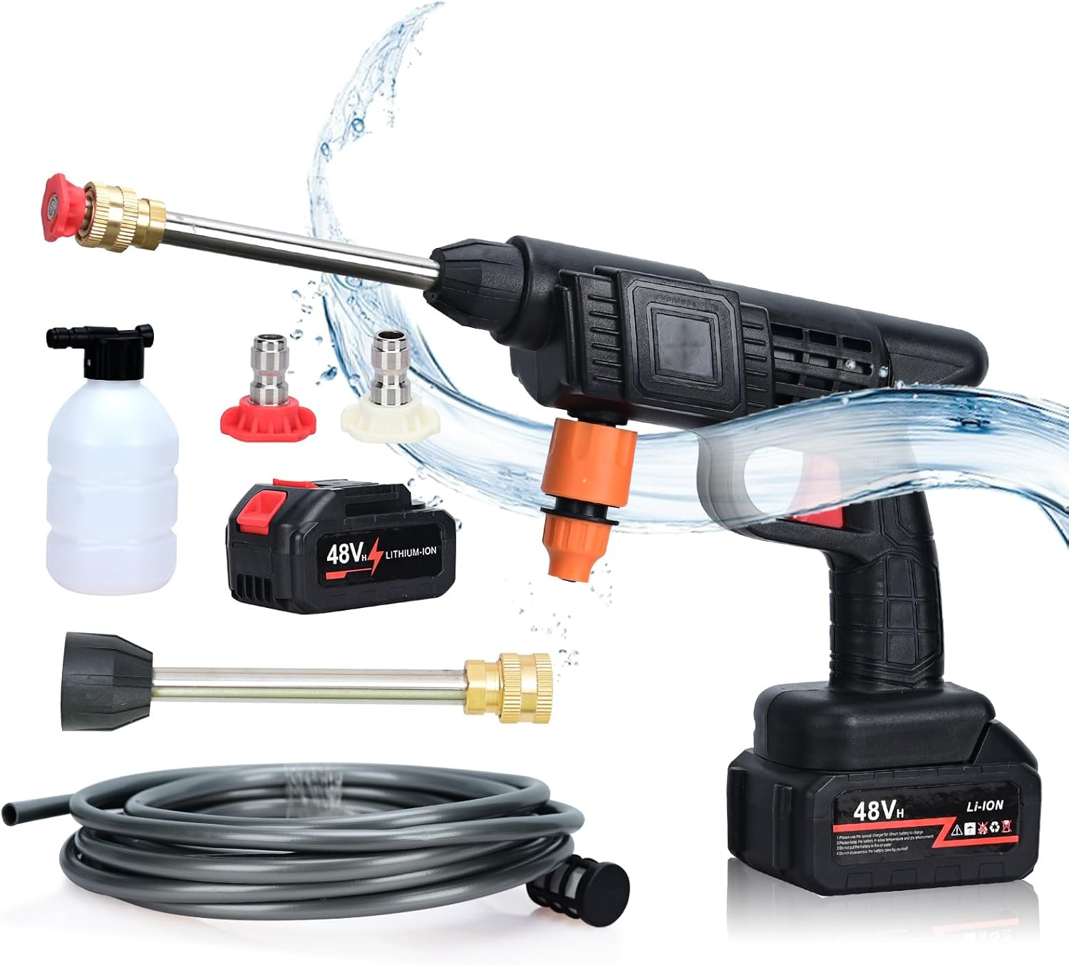 SP Dealz Cordless Pressure Washer, 30Bar Pressure Water Spray Gun, 48V Lithium Battery Lasts for 60 Min with Fully Charged, Portable High Pressure Car Washer for Car/Fence/Wall/Deck Cleaning