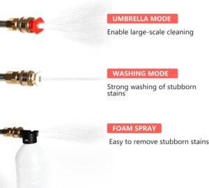 Multiple cleaning methods Umbrella shaped mode for large-scale cleaning Strong flushing mode for stubborn stains Easy to clean foam mode Provide you with cleaning needs for different occasions