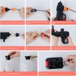 • Easy Access To Water This cordless pressure car washing machine is about 3lb. The 16.5ft hose with filter basket can effectively filter impurities, particles, waste leaves or sludge, better protect our pressure machine. Compared with others, our battery-powered pressure is lighter and more portable.