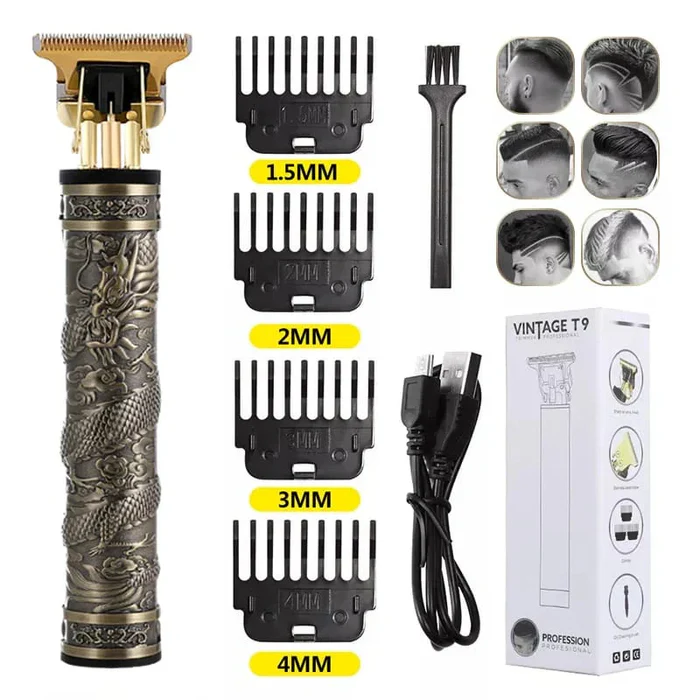 - Outstanding Trimming Ability – For you, our Vintage T9 Hair Trimmer is the ideal choice! It makes it easy to rapidly cut hair in a tidy, professional-looking manner. Because of its precise cutting, even beginners with no prior experience in haircutting may use it. The steel blade of the hair trimmer is sharp enough to enable you to cut with more accuracy. Its sharp blade can effortlessly cut through fine, thick hair/mustaches without slowing down or dragging.